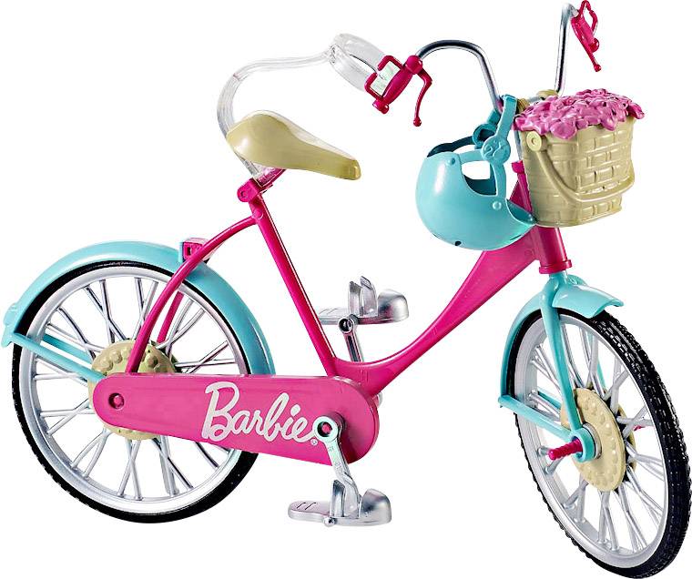 Mit diesem Fahrrad in Pink und Blau startet Barbie in fantasievolle Abenteuer! Dank der richtig rollenden Räder, der funktionierenden Pedale sowie den Clips auf dem Sattel und auf jedem der beiden Pedale, an denen die Puppe befestigt werden kann, ist das Fahrradfahren ein Kinderspiel.