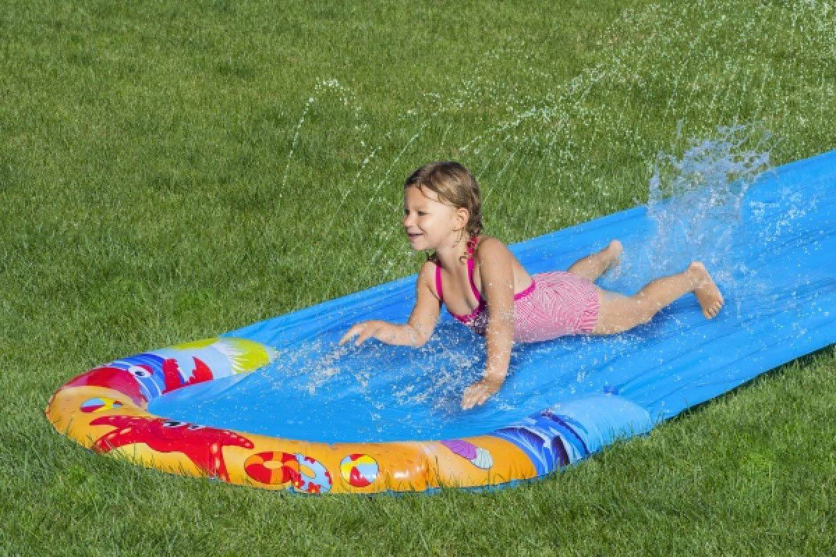 Splash & Fun Wasserrutsche Beach Fun. Maße: 510 x 110 cm. Aus langlebigem PVC Material. Materialdicke: 0,20/0,14 mm. Für Kinder ab 5 Jahren.