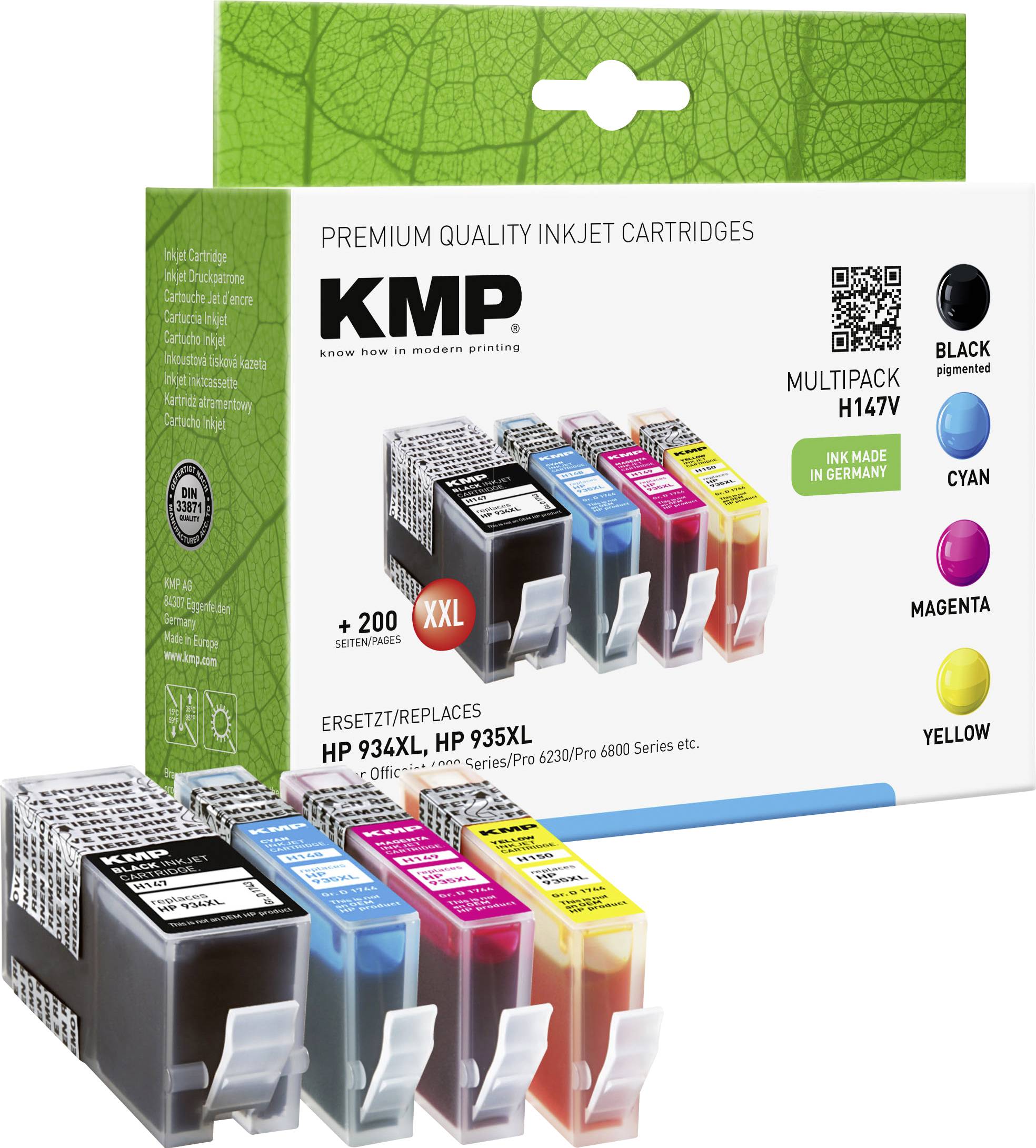 KMP Druckerpatrone Kombi-Pack Kompatibel ersetzt HP 934XL, 935XL, X4E14AE, C2P23AE, C2P24AE, C2P25AE, C2P26AE Schwarz, Cyan