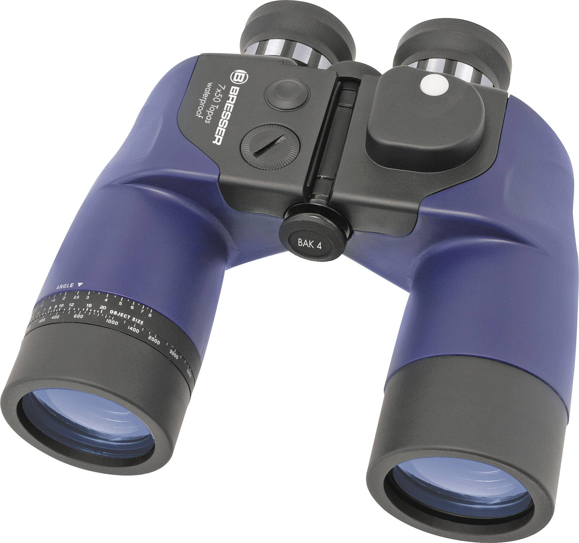 Das Topas 7x50 ist ein klassisches Marinefernglas in Porroprismen-Bauweise. Die Optik bietet gute Dämmerungsleistung und die 7-fache Vergrößerung hat sich bei dieser Anwendung als Standard bewährt. Außerdem verfügt das Topas über einen integrierten und beleuchteten Magnetkompass, sowie eine Strichplatte zur Ermittlung von Größen oder Entfernungen, welche von einer Ringskala am Objektivstutzen zur Berechnung im Handumdrehen unterstützt wird. Das wasserdichte Fernglas liegt durch seine ergonomische Gummiarmierung gut in der Hand und ist auch gegen Stöße geschützt. Die Einzelokulareinstellung ermöglicht es, das Fernglas einmal einzustellen und dann auf alle nautisch relevanten Entfernungen ein scharfes Bild zu erhalten. Umstülpbare Augenmuscheln ermöglichen auch Brillenträgern die Nutzung des gesamten Sehfeldes. Durch die Verwendung von optischem BAK-4 Glas und einer Mehrschichtvergütung bietet es stets ein helles und kontrastreiches Bild. Die Objektivschutzkappen sind praktisch mit Riemen gegen Verlieren gesichert. Auch ein Stativanschlussgewinde ist vorhanden. Ebenso liegt ein Schwimmgurt bei für den Fall dass das gute Stück einmal über Bord gehen sollte.