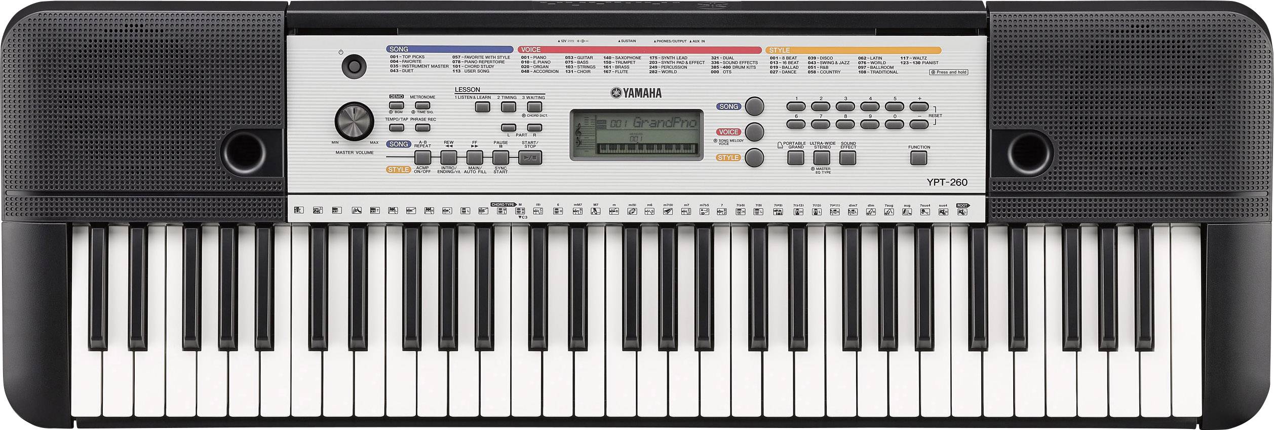 Das YPT-260 ist ein Einsteigerkeyboard mit 61 Tasten und zahlreichen Klangfarben und idealen Funktionen für aufstrebende Musiker, die gerade anfangen.