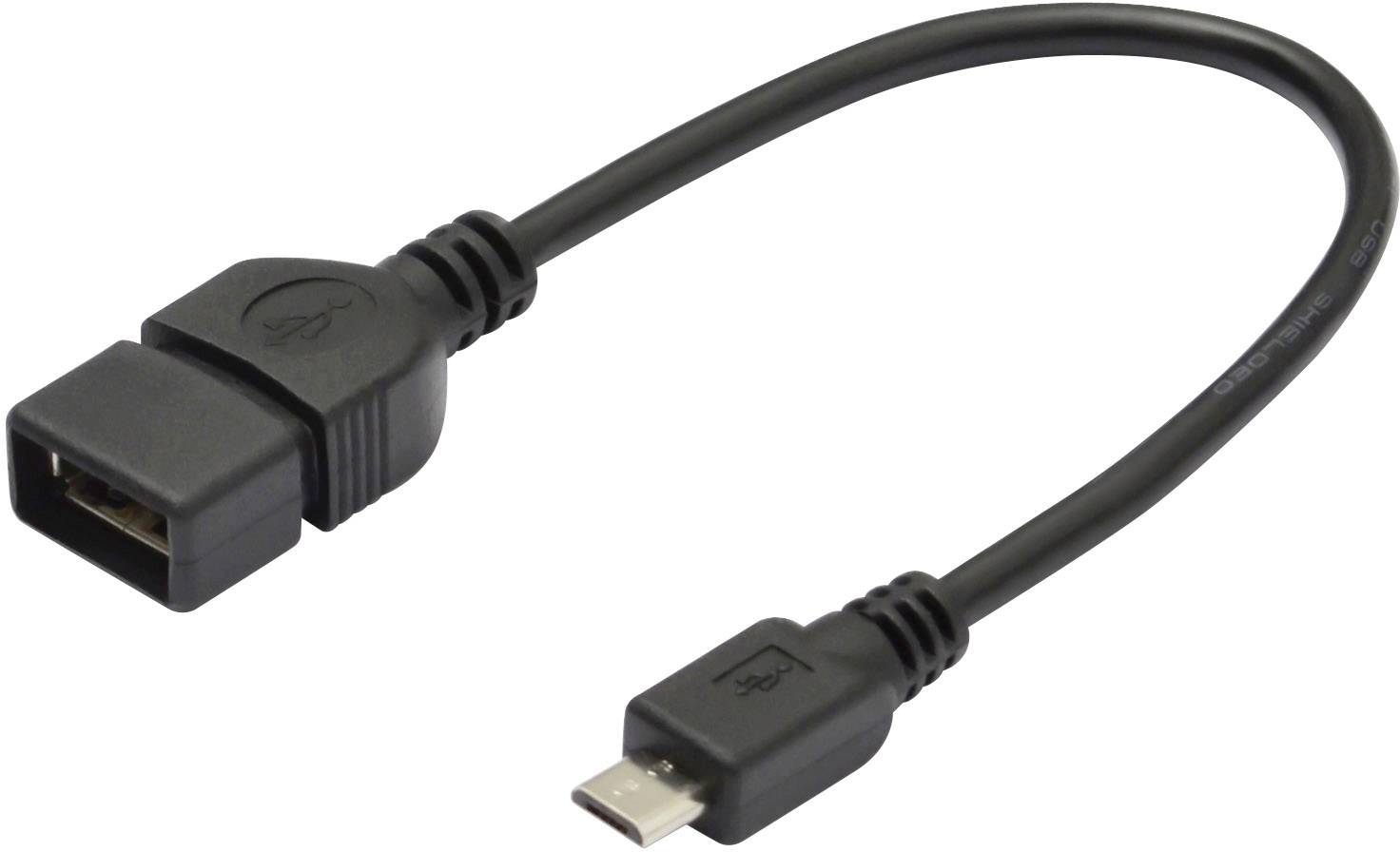 Digitus USB 2.0 Adapter [1x USB 2.0 Stecker Micro-B - 1x USB 2.0 Buchse A] DK-300309-002-S Rund, doppelt geschirmt, mit