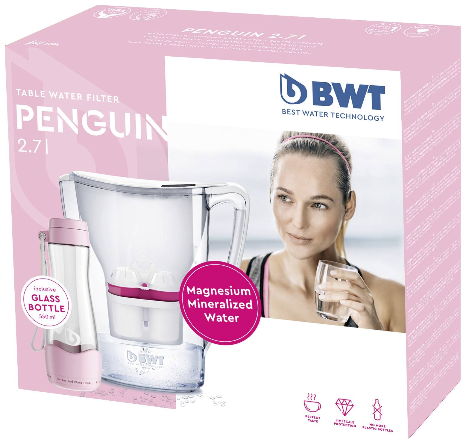 Attraktives Design mit optimalem ergonomischen Handling zeichnen die Tischwasserkanne Penguin aus. Sie verfügt bereits über die neue Mg²+-Technologie für sauberes, besser schmeckendes Wasser.