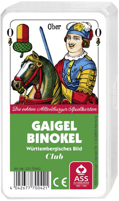 Gaigel und Binokel, das Spiel für 2-6 Spieler mit Württembergischem Bild. Weit verbreitet bei den Schwaben sind Köpfchen und Gedächtnis gefragt. Anzahl der Spieler: 2-6 Spieler Alter: Spielzeit: ab 5 min.