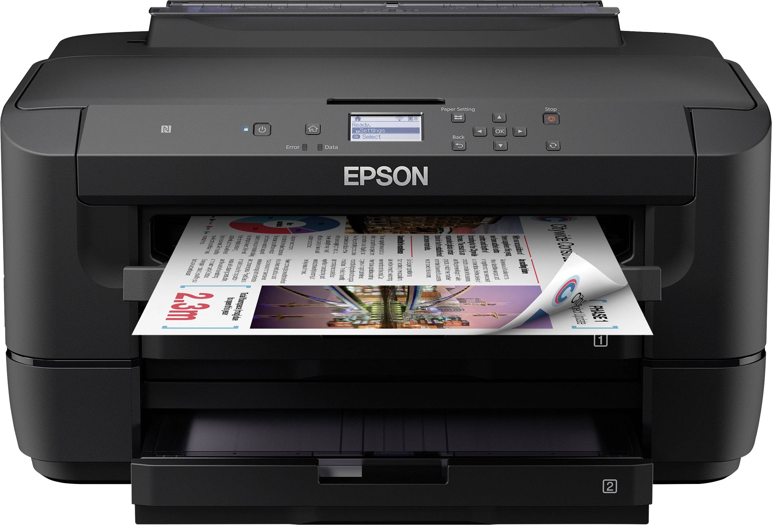 Dank WLAN-Konnektivität können Sie von überall aus im Büro drucken. Alternativ haben Sie mit Wi-Fi Direct™ die Möglichkeit, Druckaufträge von kompatiblen WLAN-Geräten auch ohne WLAN-Router direkt an den Drucker zu senden. Sie können auch per NFC drucken, indem Sie ein kompatibles Android-Gerät einfach am Drucker antippen. Für noch mehr Vielseitigkeit sorgen die kostenlosen Apps und Lösungen von Epson für mobiles Drucken. Mit Email Print können Sie Dokumente, die ausgedruckt werden sollen, von praktisch überall auf der Welt an den Drucker senden.