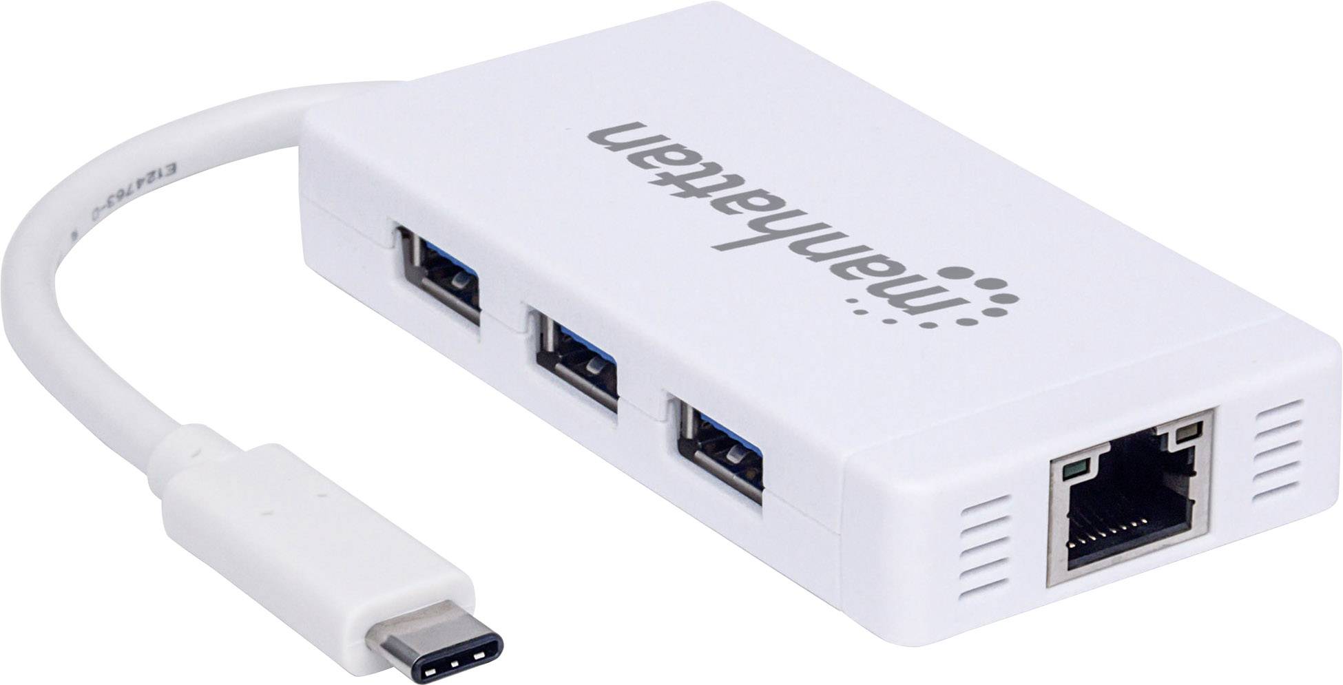Manhattan, 507608, USB 3.1 Typ C auf 3 Port USB 3.0 HUB mit Gigabit Ethernet Anschluß, Adapter, Network Adapters Wired, Manhattan
