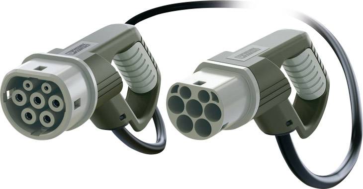 Geeignet für Ladestationen, Elektro- und Plug-in Hybrid-Fahrzeugen. Ladeleitung mit Fahrzeugkupplung gemäß IEC 62196-2. Mobile AC-Ladeleitung mit Fahrzeug-Ladestecker und Infrastruktur-Ladestecker, mit Schutzkappen, Typ 2, IEC 62196-2, 32 A / 480 V (AC), Designlinie D-Line, Kabel: 12 m, schwarz, gerade, ACHTUNG: Die Kapazität zwischen CP und PE übersteigt die normative Vorgabe von 1500 pF., Steckgesicht: grau, Griffbereich: grau.