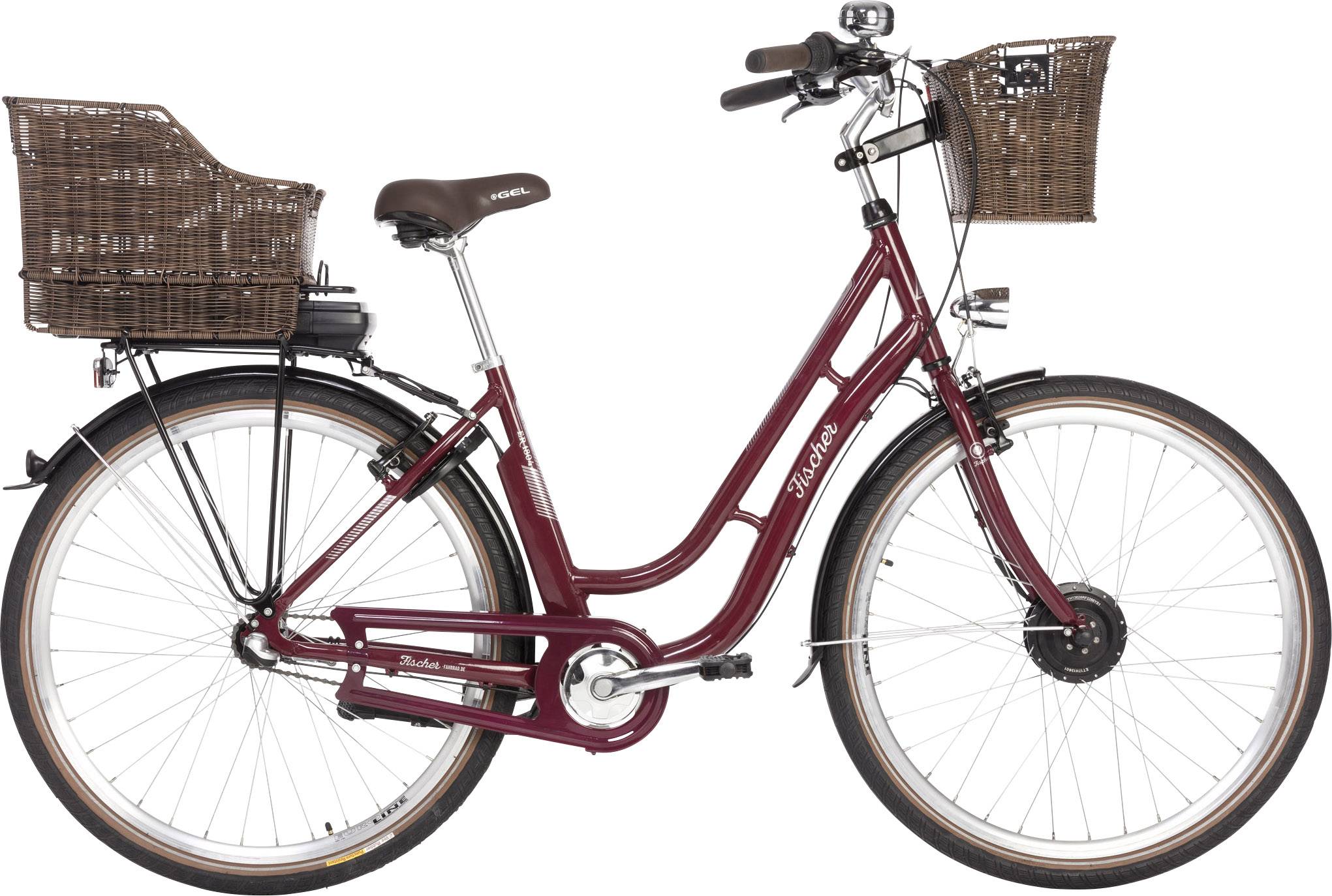 Klassik-Tourer für den Shopping-Trip. Einen bildschönen Klassiker mit großzügigen Körben für den ausgelassenen Shopping-Trip hat Fischer mit dem ER1804 im Programm. Das Besondere am Fischer Retro-Rad: Der Akku wird vom praktischen Gepäckträgerkorb verdeckt, und auch der kompakte Frontmotor ist kaum zu sehen. Bestaunen kann man einen Schwanenhalsrahmen in drei schönen Farbtönen mit Chromscheinwerfer. Die Sitzhaltung ist angenehm aufrecht und bietet mit weichem Gelsattel und geschwungenem Lenker viel Komfort. Dreigang-Nabenschaltung und Rücktrittbremse sind klassisch und bewährt; dazu kommen Felgenbremsen und Annehmlichkeiten wie LED-Dauerlicht und ein Rahmenschloss.