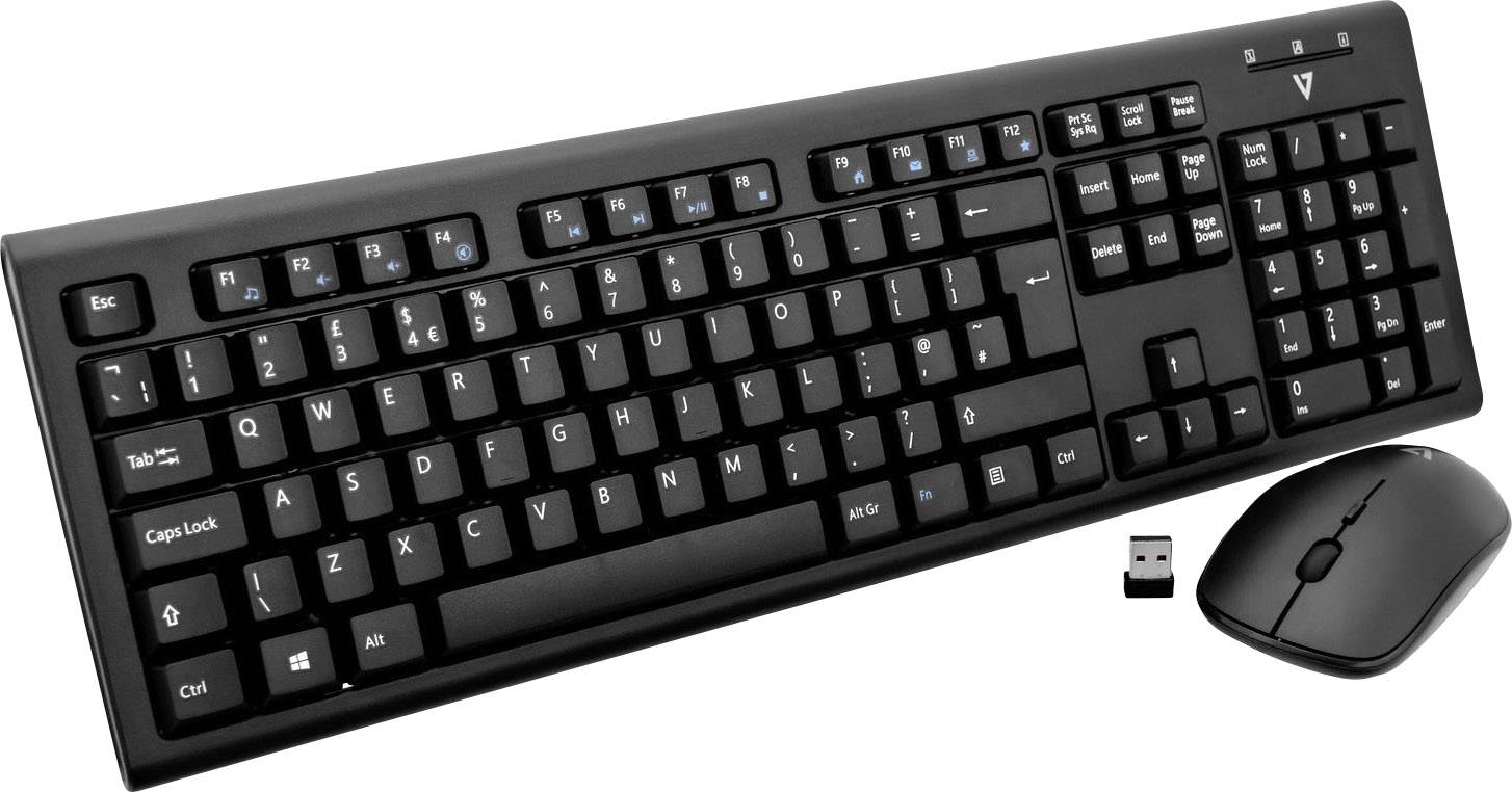V7 Videoseven CKW200UK Funk Tastatur, Maus-Set Spritzwassergeschützt Englisch, QWERTY Schwarz