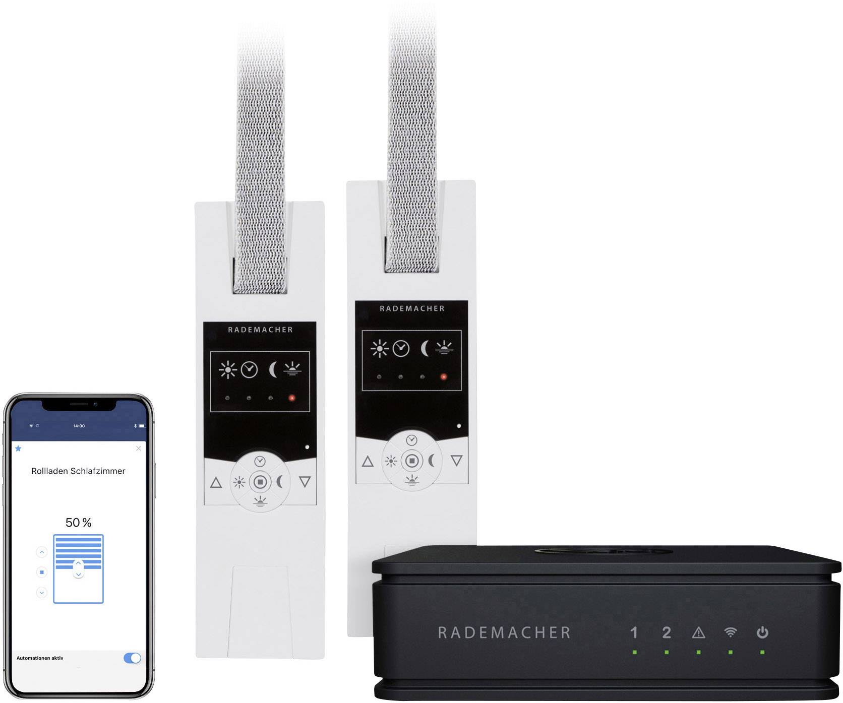 Das Set "Schlafenszeit" besteht nebem dem HomePilot® aus zwei elektrischen Gurtwicklern "RolloTron Standard DuoFern".