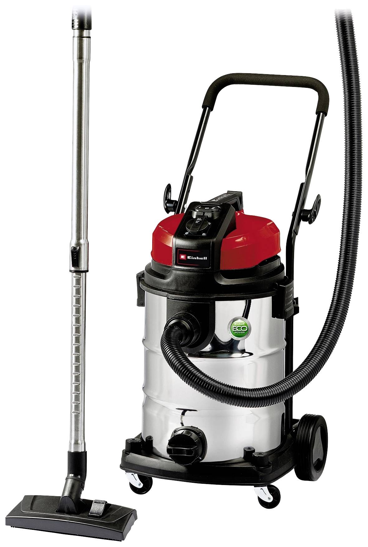 Der Einhell Nass-Trockensauger TE-VC 2230 SA reinigt im Gegensatz zu einem reinen Staubsauger und einem Wischmopp tief und gründlich. Damit ist ein Nass-Trockensauger die passende Ergänzung zu haushaltsüblichen Reinigungsgeräten bei starken, hartnäckigen und tiefen Verschmutzungen. Auch ambitionierten Heimwerkern ist ein Nass-Trockensauger bei Reinigungsaufgaben am Bau, in der Werkstatt oder im Hobbykeller ein praktischer Helfer. Das Innere aller Arten von Kraftfahrzeugen kann mit einem Nass-Trockensauger bis in die Textilspitzen gereinigt werden, Sitze und Himmel gleichermaßen wie die Teppiche und die Verkleidung. Der Einhell Nass-Trockensauger ist als ECO Staubsauger für hohe Saugleistung bei geringem Stromverbrauch konzipiert und setzt 1.150 Watt um. Der rostfreie Edelstahlbehälter fasst 30 Liter und ermöglicht damit ausdauernde Einsätze. Der Fehlluftregler ist einfach zu erreichen am Handgriff. Ein Blasanschluss zum Ausblasen von schwer zugänglichen Stellen ist integriert. Große Räder und Rollen gewähren einen einfachen Transport und Mobilität. Am Gehäuse integriert ist eine automatische Gerätesteckdose zum Betrieb von Elektrowerkzeugen. Ebenso vorhanden ist eine praktische Zubehörhalterung zum sauberen Verstauen des mitgelieferten Zubehörs. Das 500 Zentimeter lange Stromkabel kann am Trolley-Griff aufgewickelt werden. Eine einfache Reinigung des Nass-Trockensaugers gelingt durch die Wasserablassschraube zum Ablassen des aufgesaugten Wassers. Im Lieferumfang enthalten sind ein Teleskoprohr aus Edelstahl (Ø 36 mm), ein extra langer Plastiksaugschlauch (Ø 36 mm) mit 3 Metern Länge, eine große Kombidüse für Teppich- und Glattböden, Fugen- und Polsterdüse sowie Schaumstofffilter, Faltenfilter und Papierschmutzfangsack.