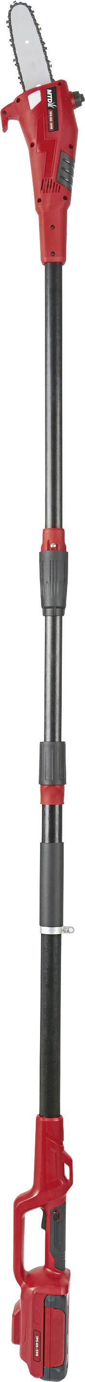 Die Kettensäge bietet mit 5,5 m/Sek. eine der schnellsten Sägen in ihrem Segment und mit 2,98m Länge ist sie auch eine der längsten Hochentaster. Er kommt mit einem Schultergurt, um die Gewichtsverteilung für größere Höhen ideal austarieren zu können. Mit einer Laufzeit von bis zu 40 Minuten liegt die Kettensäge deutlich über dem Marktdurchschnitt.