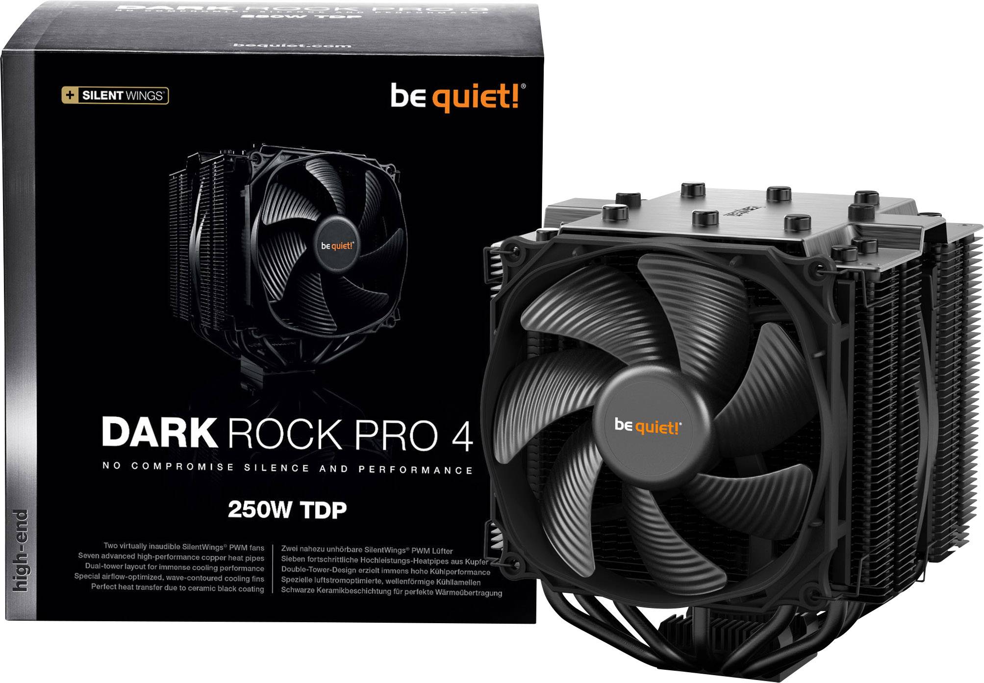 Der Dark Rock Pro 4 bietet eine immense Kühlleistung von 250W TDP und ist nahezu unhörbar leise im Betrieb. Perfekt für anspruchsvolle Systeme und übertaktete CPUs.