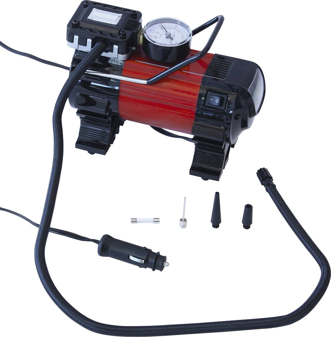 Zum Aufpumpen von Autoreifen, Schwimmkörpern und Bällen. Der Kompressor ermöglicht mit seinen 140 W, 10 bar und 30 Liter pro Minute das Aufpumpen von Autoreifen, Luftmatratzen und Bällen. Der Kompressor benötigt ca. 3 min für einen 195/65 R15 Reifen von 0 bis 2 bar. Der Luftdruckschlauch hat eine Länge von ca. 80 cm., das Stromkabel ca. 3 Meter. Die Manometer-Anzeige kann Druckluftwerte in bar & psi darstellen. Die integrierte LED-Lampe erleichtert das Aufpumpen auch in der Dunkelheit.
