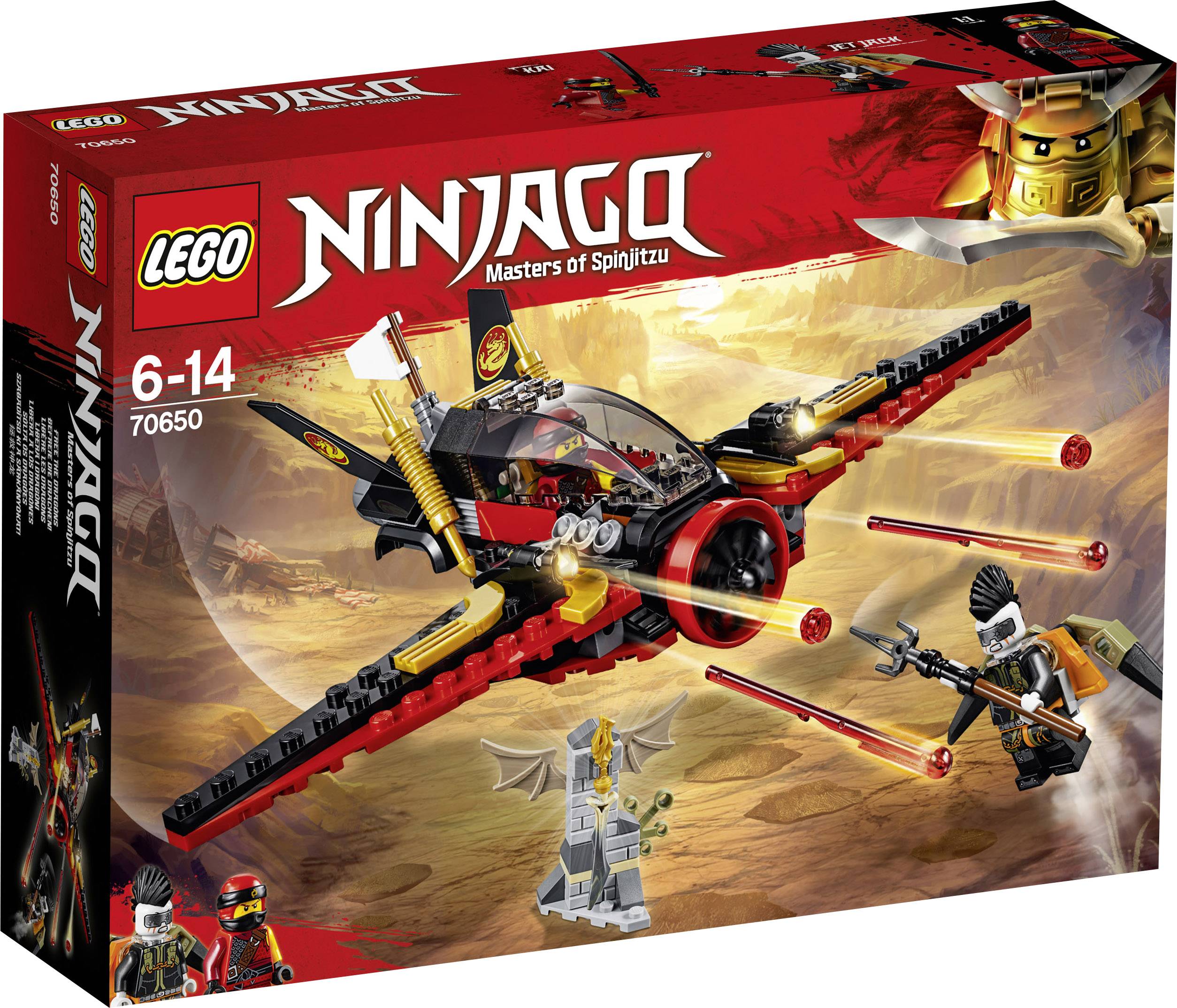 Flieg mit dem Ninja Kai im LEGO® NINJAGO® Flügel-Speeder (70650) los, um dir die Drachenknochenklinge zu holen, bevor Jet Jack sie sich schnappen kann! Der Flügel-Speeder verfügt über ein aufklappbares Minifigur-Cockpit und ist mit verschiedenen Shootern ausgestattet. Dieses Set enthält auch einen Ständer für die Drachenknochenklinge sowie 2 voll ausgerüstete LEGO NINJAGO Minifiguren und Jet Jacks Raketenrucksack, um actionreiche Rollenspiele inszenieren zu können.