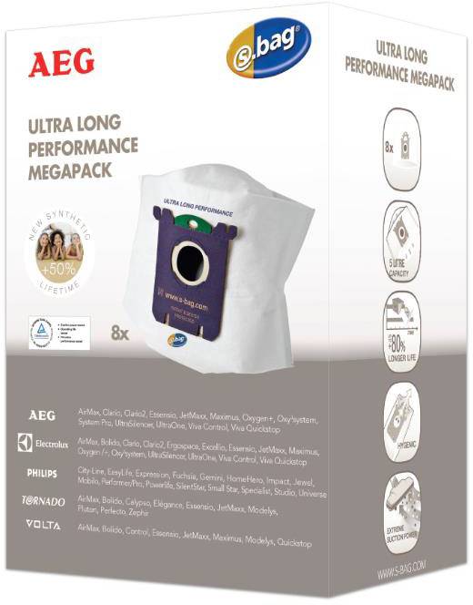 Der s-bag® Ultra Long Performance Beutel kann 80 % länger als herkömmliche Staubsaugerbeutel aus Papier verwendet werden und weist darüber hinaus eine optimale Kapazität von 5 Litern auf. Dieser Beutel kann über einen wesentlich längeren Zeitraum überzeugende Spitzenergebnisse bieten.