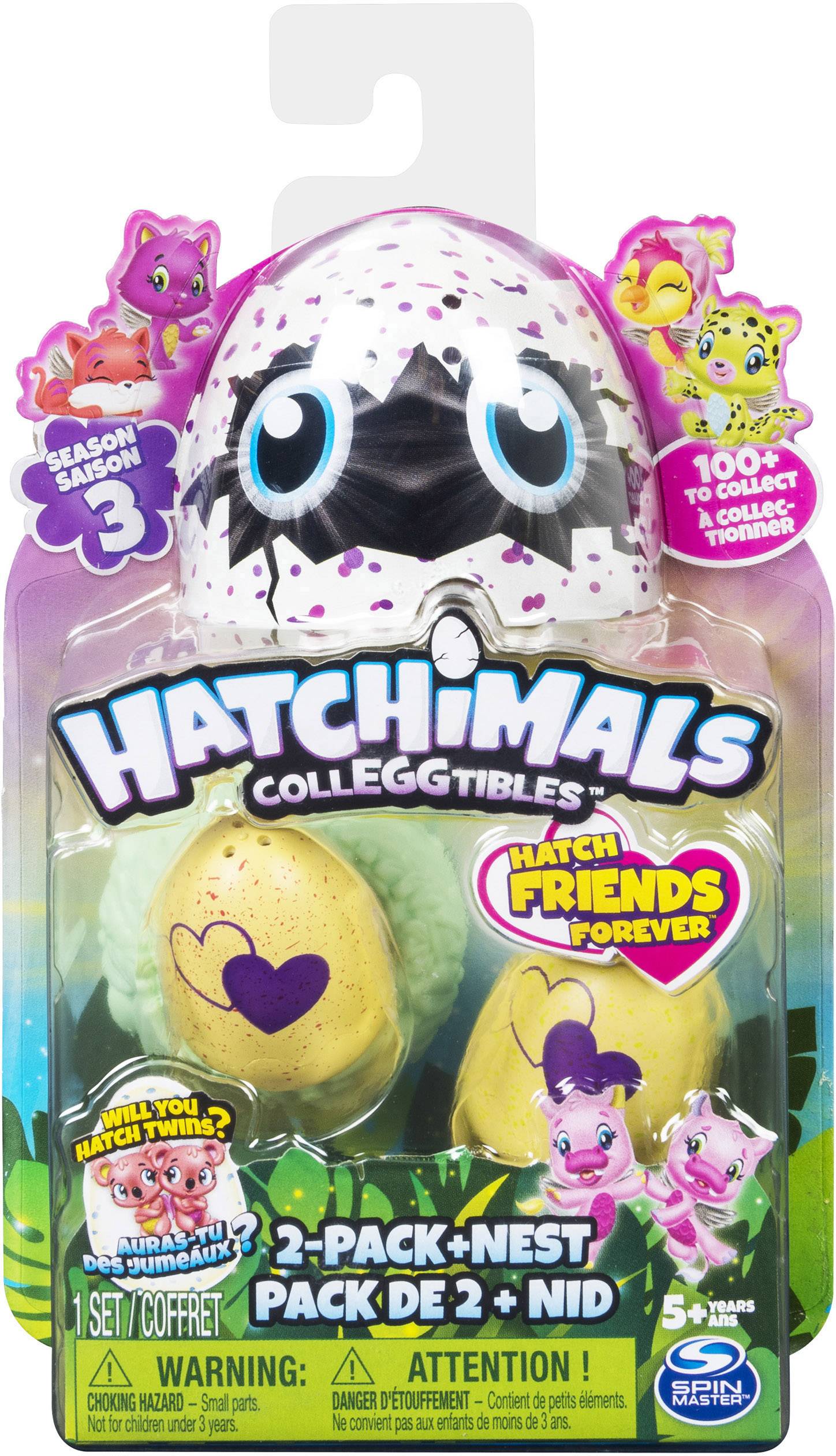 Die Grundfarbe der Eierschale verweist auf die jeweilige Season, die Farbflecken auf die jeweilige Familie – dadurch werden die Colleggtibles auch schon im geschlossenen Zustand tauschbar! Reibe das Ei mit deinen Händen – und das Herz in der Mitte der Schale verfärbt sich und zeigt, ob das CollEGGtible darin schlüpfbereit ist. Brich vorsichtig die Eierschale auf, um das kleine Hatchimal schlüpfen zu lassen!